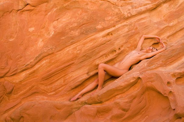 After our pause at the twin trees we headed on down into Little Wild Horse Canyon. This was my first time in this canyon, so I wasn’t sure what to expect, but found it to be well worth the hike. Beautiful red rock walls, scoured by flash floods that create wonderful curves in the surface of the rock. And, as in all the slot canyons out in this desert, the light becomes intensely red as it filters down into the bottom of the canyon, bouncing off the red rock walls on the way down, getting redder and redder. By the time it reaches the bottom everything simply glows red.