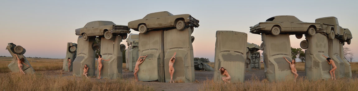 This has been a season for celebration for as long as humans have been celebrating.  The sun has stopped retreating and has begun to stay longer and longer each day.  Winter is here, but spring is coming.  We have much to celebrate.  In honor of this ancient tradition that reaches into our time in many ways, this seems like a good time to enjoy beautiful nude women dancing around Carhenge.