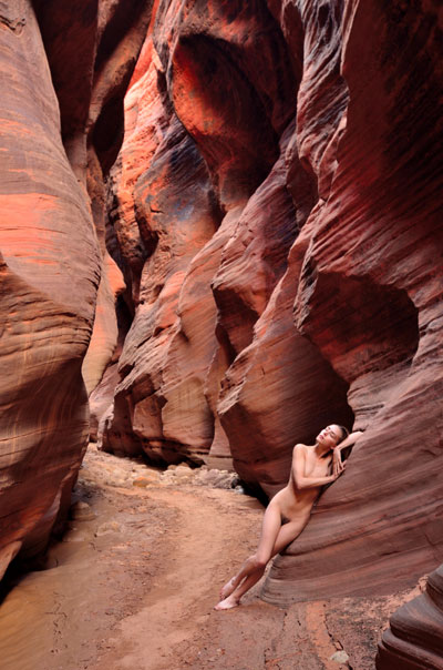 After the open area Wirepass Canyon ends when it flows into Buckskin Gulch. That’s where these photos of Brooke and Kat were taken. Buckskin Gulch is a very different canyon from Wirepass. It is much deeper and much, much longer. In fact it is the longest and deepest slot canyon in the southwest…maybe in the world. It is 12 miles long, ending at the Paria River, which flows on into Lake Powell. The canyon is as deep as 500 feet. It’s a bit dark down in there…but it’s a beautiful darkness.