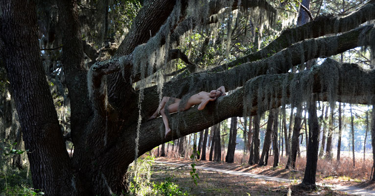 I don’t only take photos of naked chicks on rocks. Sometimes I do photos of naked chicks in trees. While I was down south I was blessed with the chance to work with a wonderful new (to me) model, Charlise. I had actually contacted Charlise on an earlier trip down to South Carolina, but it didn’t work out for us to shoot on that trip. But this time when I got back in touch she was available. Not only that, she was willing to drive out from Charleston to a nature preserve that I had hiked around in before wishing I had a model with me. And, of course, she had to make that drive in the pre-dawn darkness because I wanted to shoot the sunrise on the beach. We’ll get to those photos later.