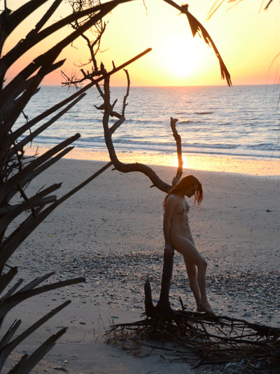 I love the tones on the root and her body. That looks to be just after sunrise by the light angle.
