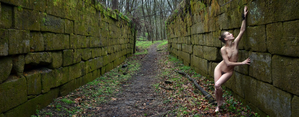 …An old canal lock, that is. A canal used to run through this old area near my childhood home. The remains of one of the locks is still there. Natural rocks can make a great background for figure photos, but man-made rocks can work as well.