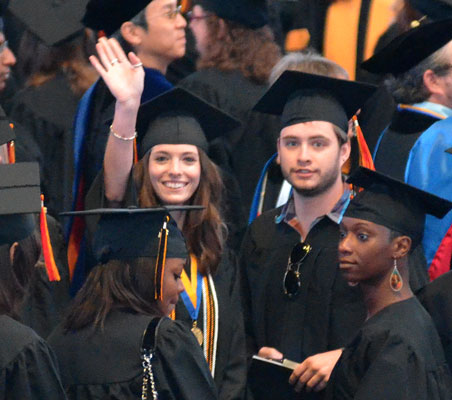 …for a personal message. I’m in Florida on a family vacation for the magna cum laude graduation of my younger daughter from the University of Tampa. That’s her with her boyfriend in the photo above as she arrived at her seat following the processional.