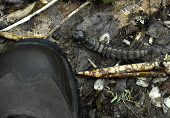 On that same trail we also saw this creature above. I put my boot in the shot below to give you some sense of scale. That is one big bug! I have no idea what it is and I’ve never seen anything like it before. Maybe one of you readers can identify it? I was thinking centipede, but it seemed to only have six real legs, so that probably isn’t what it is.