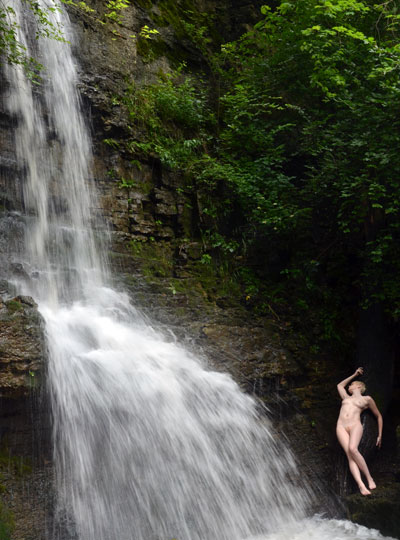 Here’s another of favorite model, Char Rose, at another favorite local waterfall. The waterfalls have been pretty amazing this year because of all the rain we’ve had, so it’s been hard to resist making multiple trips to photograph at them. In a normal weather year these falls would be all dried up by now. As you can see, that’s far from the case this year.