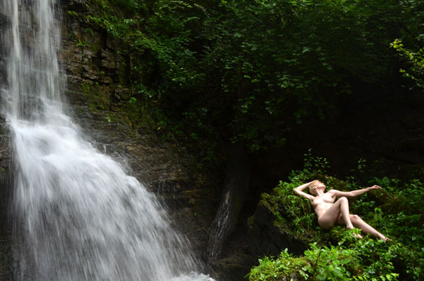 Boy that water splashing off the waterfall looks good.  She was getting wet while we were shooting this one.  I wouldn’t mind lying there where Char Rose is lying, except that there would be a long hot hike and some climbing and scrambling over rocks required to get there.  Like most of the middle of the US, we are having a heat wave.  A really nasty heat wave.  I’ve decided to treat it the same way I would a major blizzard in the winter:  Just stay inside until it is over.  I’m so happy we have air conditioning.
