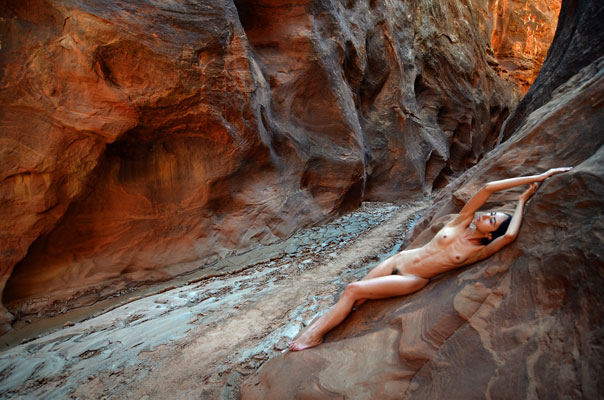 As my readers know, this trip has not been the smoothest.  After the deer damage was repaired problems continued in the form of, shall we say, less than wonderful motel rooms.  But the trade-off for all that was in the places we went.  I have a ton of new photos to share, but I’m just way too tired from today’s hiking and climbing in slot canyons to write about it all now.  So just enjoy these two photos of Kat (above) and Brooke (below)taken today in Buckskin Gultch.