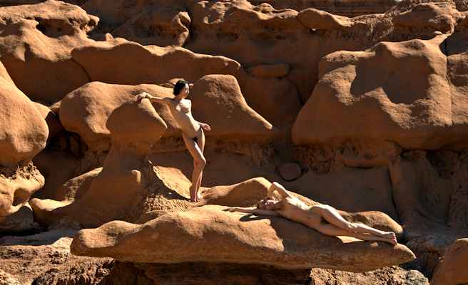 I downloaded a trial of Corel PaintShop Pro today and gave it a try.  I’m impressed.  Not exactly the same as PhotoShop, of course, but a very useful, versatile program that looks like it could do everything I need at a very reasonable cost and no issues with upgrades or RAW processing for new cameras.  Looks very good.  I used it to edit the photo above, another shot from Goblin Valley with Brooke and Kat