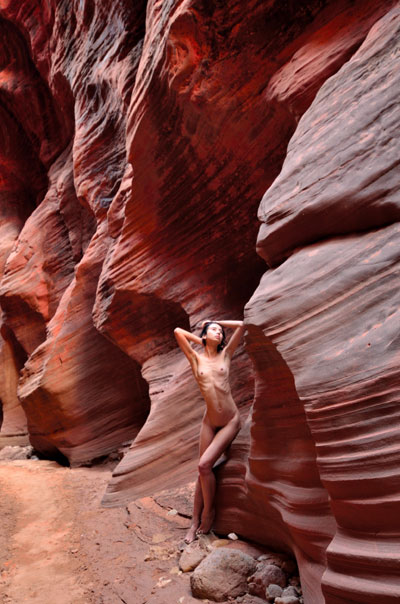 After the open area Wirepass Canyon ends when it flows into Buckskin Gulch. That’s where these photos of Brooke and Kat were taken. Buckskin Gulch is a very different canyon from Wirepass. It is much deeper and much, much longer. In fact it is the longest and deepest slot canyon in the southwest…maybe in the world. It is 12 miles long, ending at the Paria River, which flows on into Lake Powell. The canyon is as deep as 500 feet. It’s a bit dark down in there…but it’s a beautiful darkness.