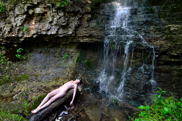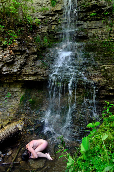 When our schedules meshed it turned out to be a great day to shoot outdoors, so I took Sugar D to a favorite local waterfall to see what we could do. She was a real trooper, hiking through the woods to the location and then getting all cold and wet and dirty so we could make these photos. It all worked out pretty well. This kind of work was a new experience for Sugar D…but I think she’ll be getting a good bit more experienced with it before I’m done with her.